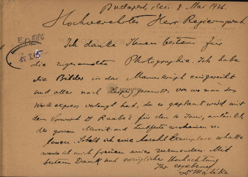 Mátéka Béla levelezőlapja ifj. Eduard von Liszthez