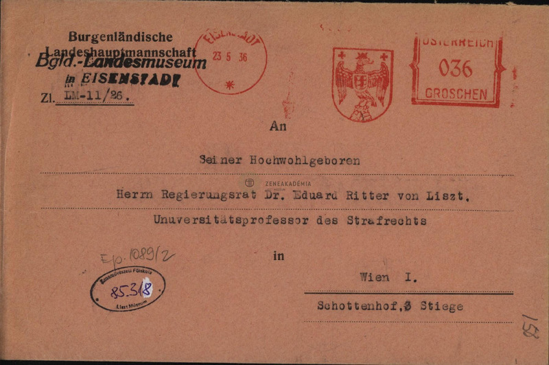 Dr. Alphons Barb levele ifj. Eduard von Liszthez