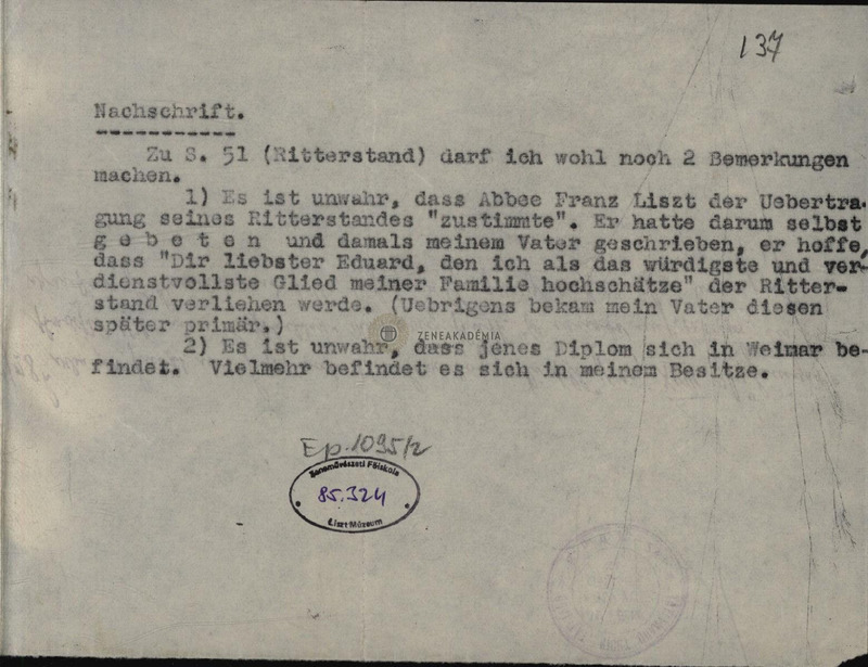 Liszt nemzetiségéről, nagyapjához fűződő kapcsolatáról, a lovagrend felvételéről.
