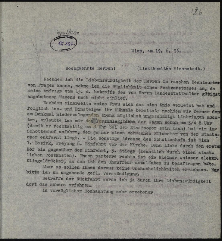 Ifj. Eduard von Liszt levele a kismartoni Liszt-bizottsághoz