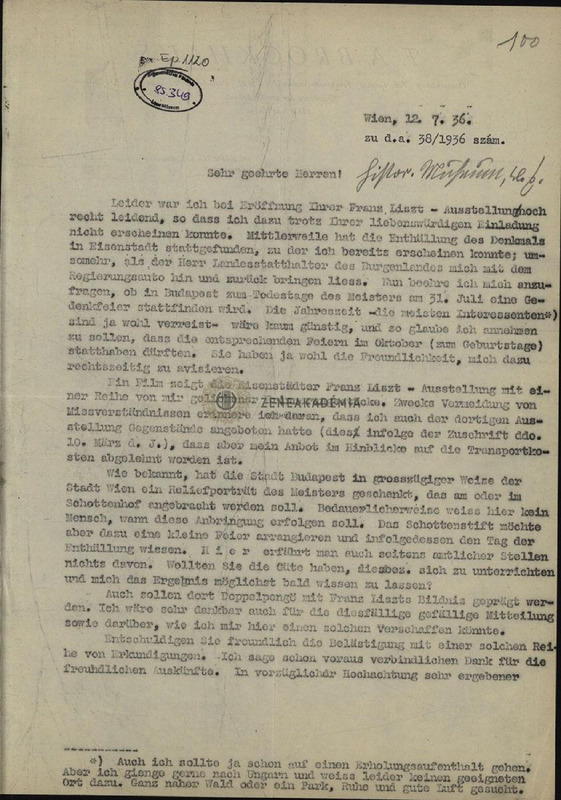 Sajnálja, hogy nem lehetett jelen a Liszt-kiállításon.