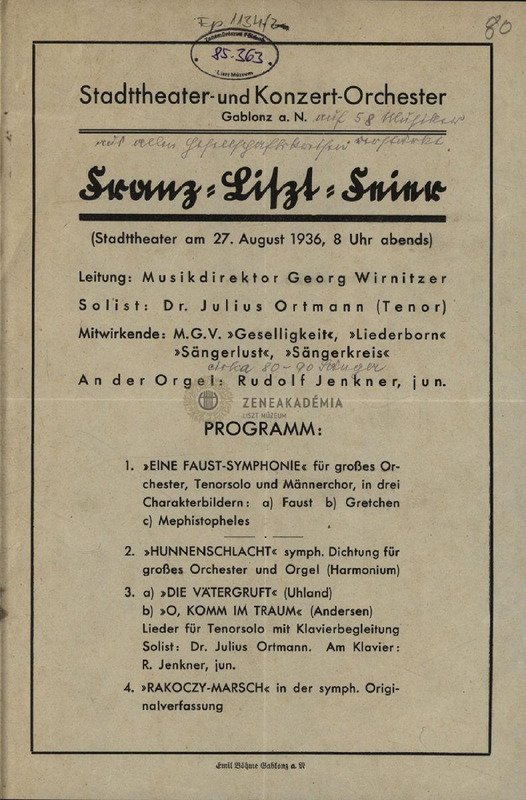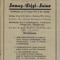 A Liszt-hangverseny körülményei. Mellékelve: a 08.27-i koncert nyomtatott műsora a levélíró ceruzás megjegyzéseivel.