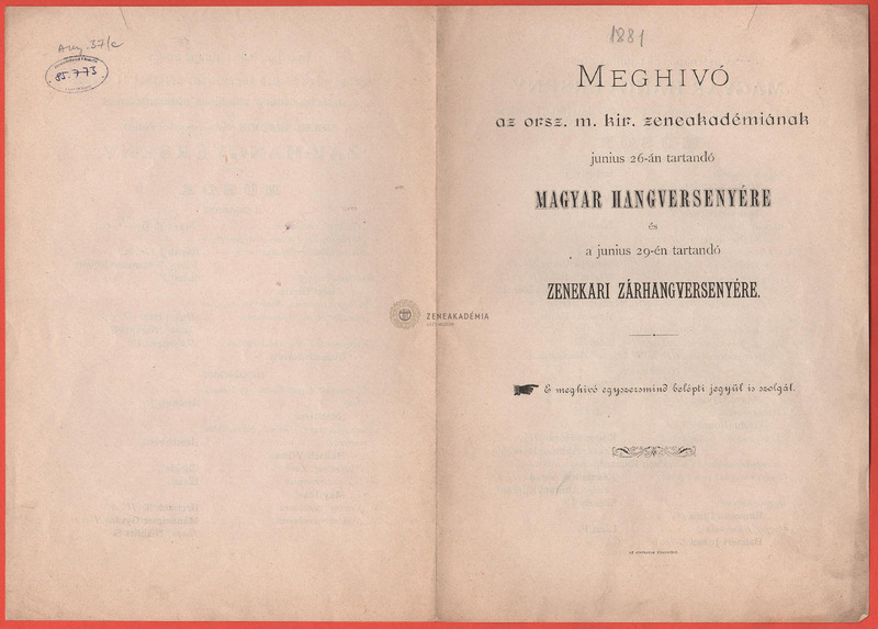 Műsor: Beethoven, Liszt, Volkmann, Brahms, Chopin, Székely, Zimay ill. a Zeneakadémia növendékeinek (Mayer, Bloch, Hegyi, Manheimer, Breisach, Késmárky, Haitsch Vilma, Weisz Etelka, Koderle Róza) művei.