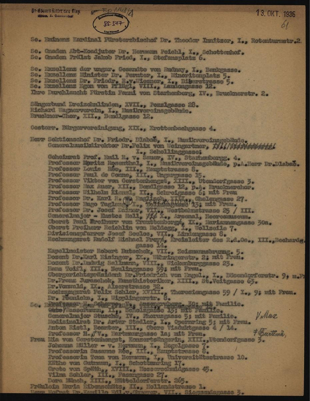 Valószínűleg a Liszt-emléktábla avatására meghívott vendégek névsora.