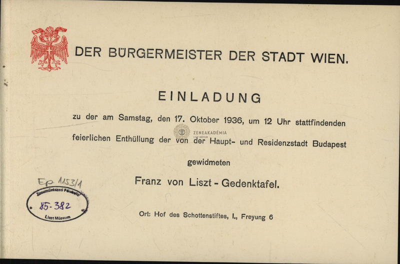 A bécsi polgármester meghívója ifj. Eduard von Liszthez