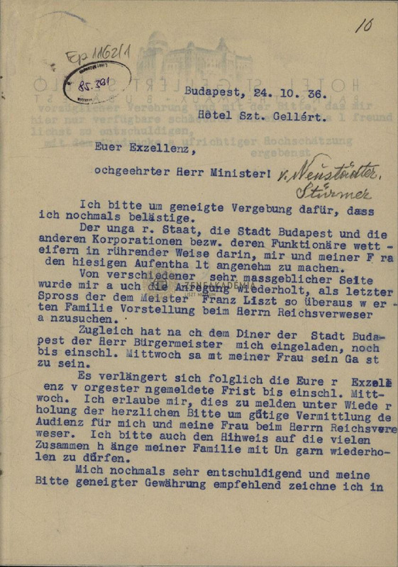 Elnézést kér, amiért a miniszter közvetített meghívását nem tudta elfogadni. A kormányzó audienciáján nem tud megjelenni.