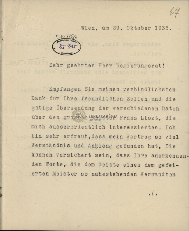Rudnay mellékelten küldi Liszt-előadásának szövegét.