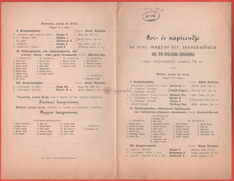Hangversenyműsor és a Zeneakadémia vizsgarendje.