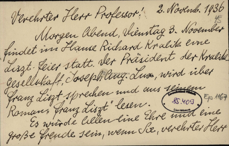 Maia Kralik levelezőlapja ifj. Eduard von Liszthez