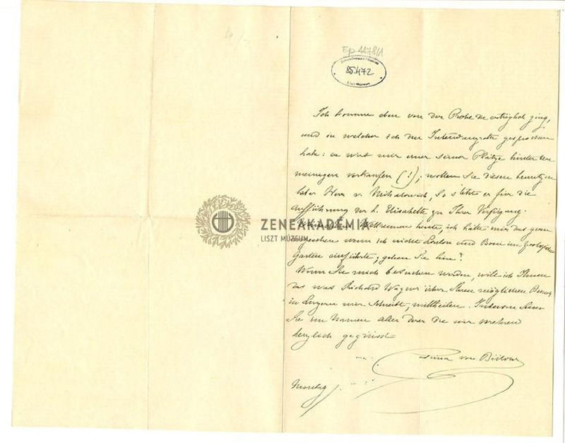 Liszt Szent Erzsébet-legendájának müncheni próbája 1866 májusában. Utalás Wagner Cosimához írt levelére Mihalovich esetleges luzerni látogatásával kapcsolatban.