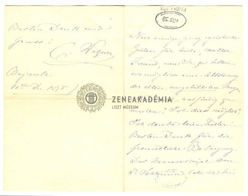 Cosima Wagner-Liszt levele Mihalovich Ödönhöz