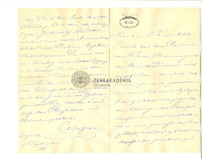 Cosima Wagner-Liszt levele Mihalovich Ödönhöz