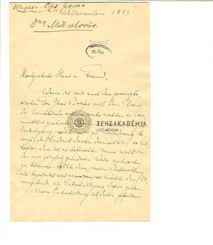 Cosima Wagner-Liszt levele Mihalovich Ödönhöz