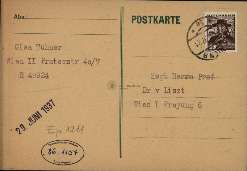 Gisa Tuhner levelezőlapja ifj. Eduard von Liszthez