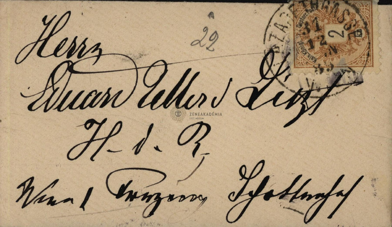 - Caroline Pruckner névjegye Eduard von Lisztnek címzett kéziratos borítékkal
