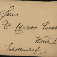 Louis és Susanne Rée névjegye kézírásos borítékkal ifj. Eduard von Liszthez