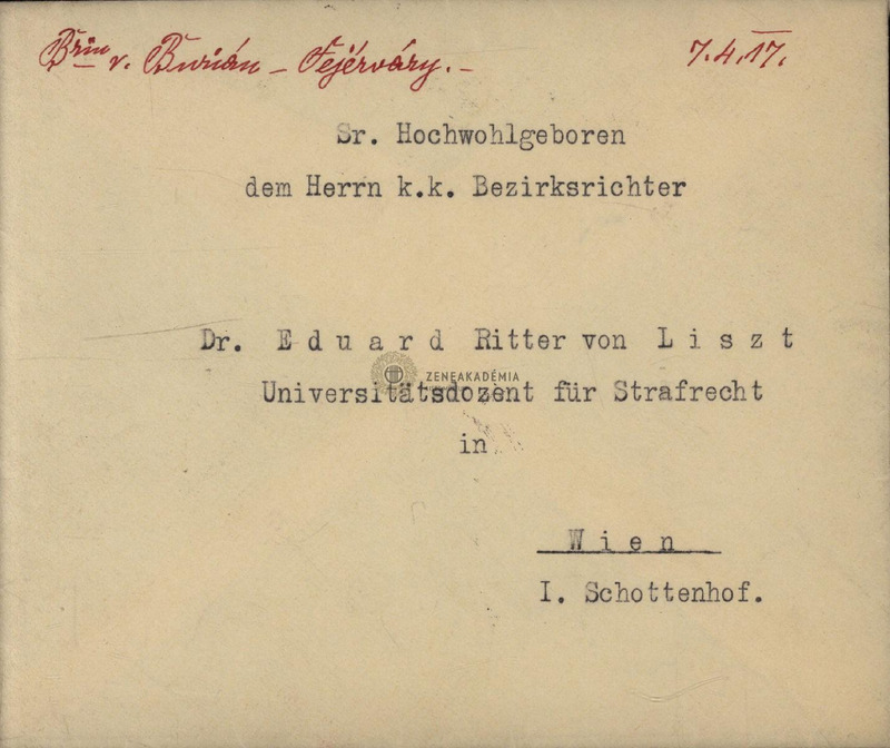 Burián-Fejérváry Olga bárónő levele ifj. Eduard von Liszthez