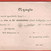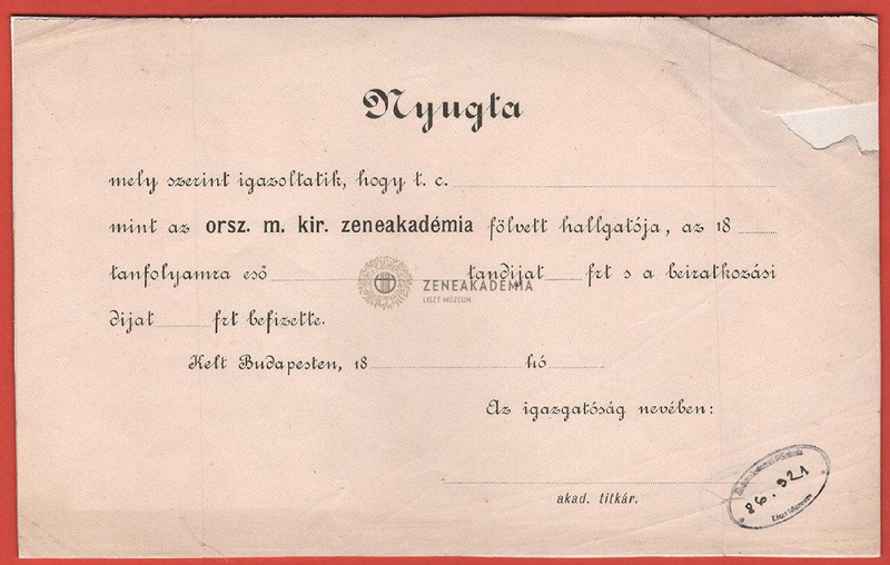 - Nyugta a Zeneakadémia beiratkozási díj megfizetéséről (kitöltetlen).