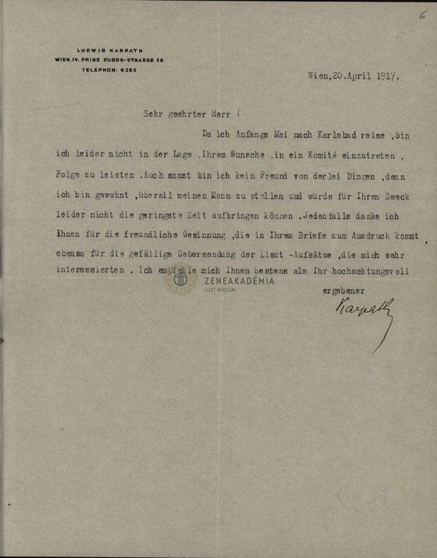 Ludwig Karpath levele ifj. Eduard von Liszthez