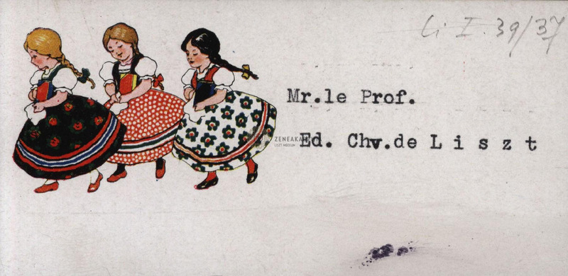- Francia nyelvű, bal oldalon 3 népviseletbe öltözött lány rajza.