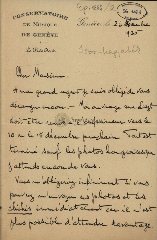 Képeket kér Liszt-ikonográfiája számára.