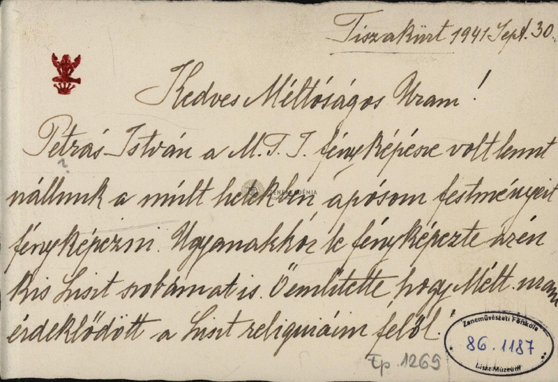 Meghívás egy látogatásra, hogy Isoz megtekinthesse a Liszt-relikviákat.