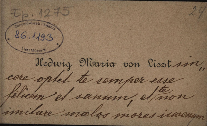 - Latin nyelvű köszöntés a címzett (esetleg ifj. Eduard von Liszt?) 15. születésnapja alkalmából.