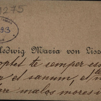 - Hedwig Maria von Liszt névjegye és üzenete ismeretlenhez