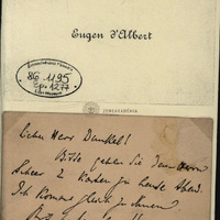 - Eugen d’Albert névjegye és üzenete Dunkl Nepomuk Jánoshoz