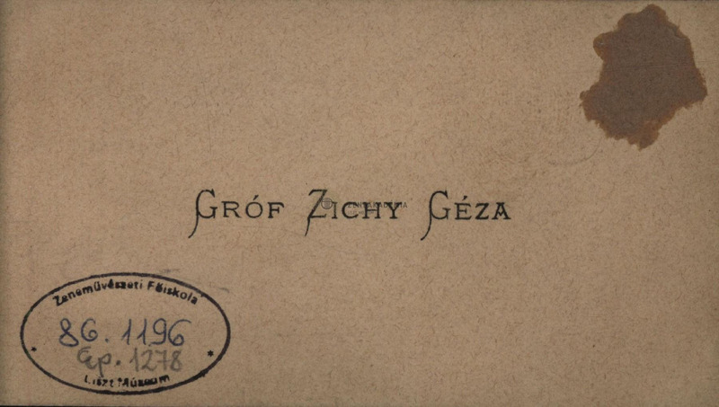 - Gróf Zichy Géza névjegye és üzenete Dunkl Nepomuk Jánoshoz