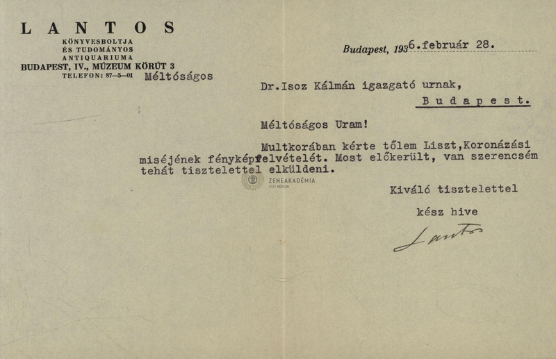 - Lantos antikvárius levele Isoz Kálmánhoz
