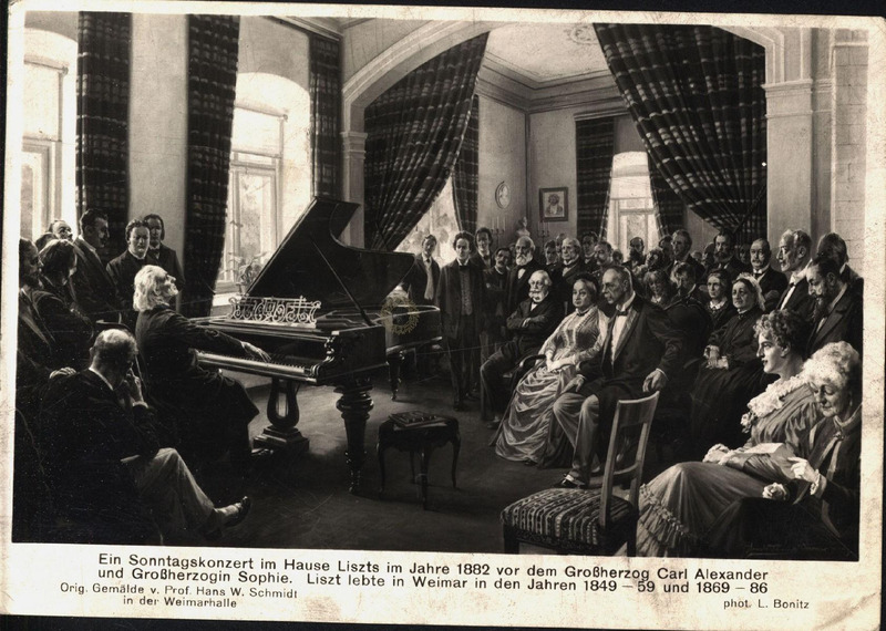 Képen: vasárnapi hangverseny a Liszt-házban Carl Alexander nagyherceg és Sophie hercegnő előtt, 1882. Üdvözlő sorok.