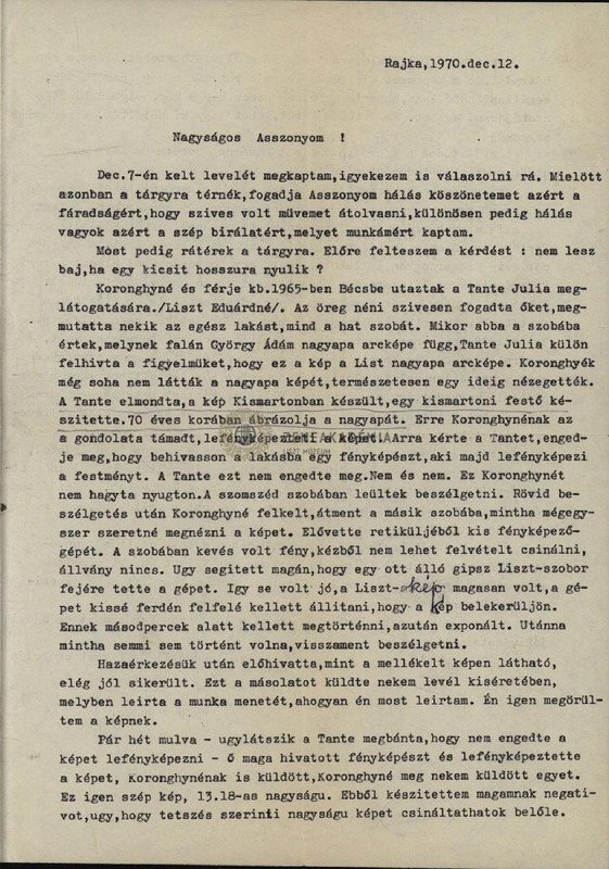 - Válasz Prahács dec. 7-ei levelére. Beszámoló egy Liszt nagyapjáról készült festményről.