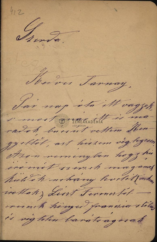 Liszt-leveleket küld Tarnaynak, és a hímzett lóca hitelesítéséül Stiller Mór levelét. Fráterrel szeretne megismerkedni, hogy előadja férje utolsó, ki nem adott dalát.
