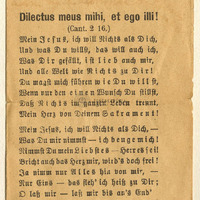 "Dilectus meus mihi, et ego illi" - Kath. Lit. Actiengesellschaft, Pressburg. Az első lap tetején Varga Vilma feljegyzése: "Liszt Ferenc Mesteremnek imakönyvéből kaptam és adom Gyubikámnak (?), Vilma néni."