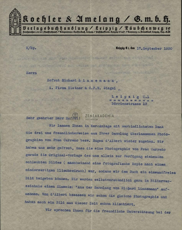 Köszönettel visszaküldik a kölcsönkapott fényképeket (Frau Carre?o és d’Albert).