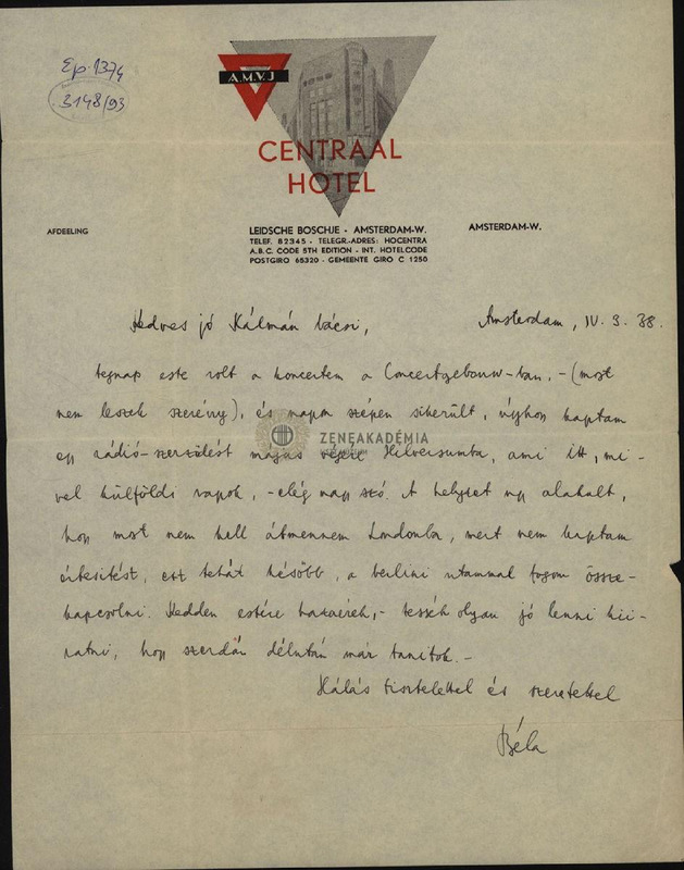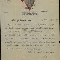 A Central Hotel levélpapírja. Beszámol koncertjeiről, terveiről.