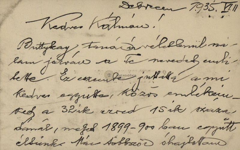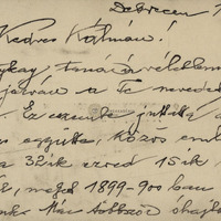 Névjegyre írva. A postahivatali igazgató katonatársa volt címzettnek 1899/1900-ban, Buttykay említésére üdvözli. Gratulál a kinevezéséhez.