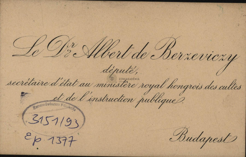 Névjegyre írva, francia nyelven. Másnapi óráját parlamenti elfoglaltságok miatt vasárnapra halasztja.