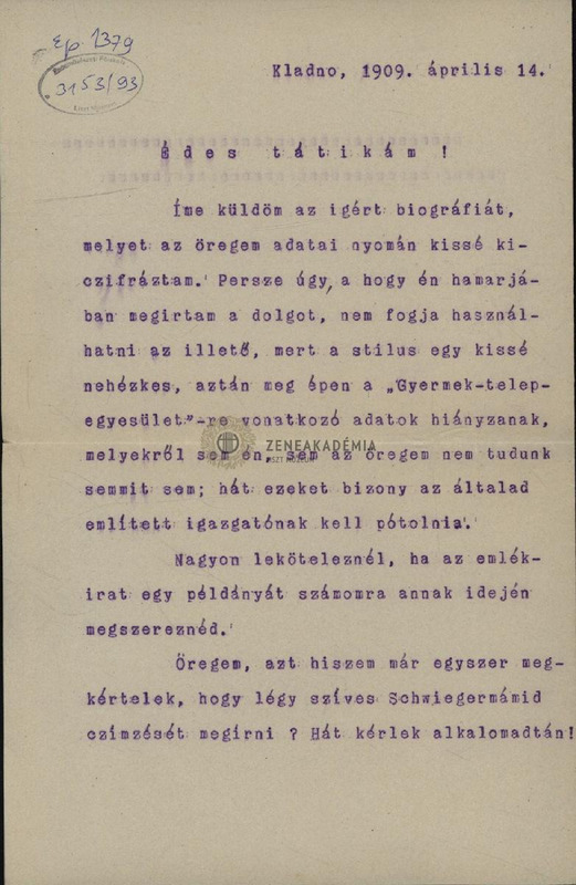Bizalmas megszólítás, tegezi. Mellékel egy életrajzot Bukovics Gyula műépítészről (szül. 1841, Bécs).