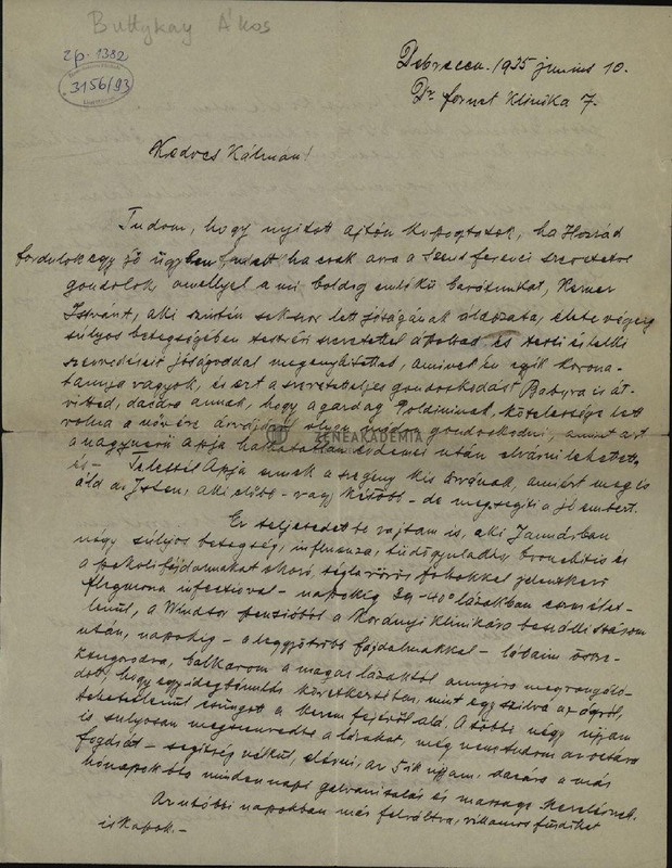 Beszámol betegségéről, kezeléséről és zeneiskolai látogatásáról. Kéri címzettet, segítsen felkarolni egy fiatal tehetséget, Szűcs Ilonát (vagyontalan zongorista, főiskolai tanulmányokra van szüksége). Mellékeli egy hangverseny műsorát (hiányzik) és egy névjegyet egy ismerőstől (valószínűleg Bohuss Károlytól).