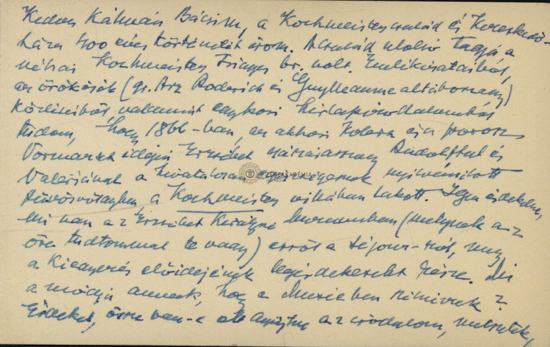 Az Erzsébet Királyné Múzeum anyagai után érdeklődik munkájával, a Kochmeister család és kereskedőház 400 éves történetével kapcsolatban.