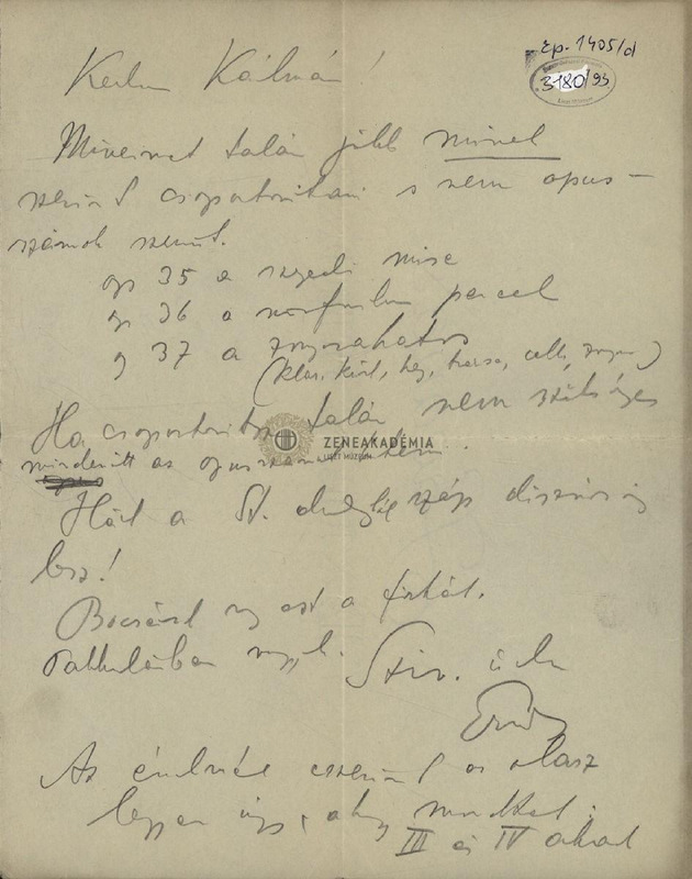 - Dohnányi Ernő levele Isoz Kálmánhoz