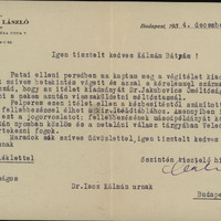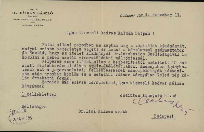dr. Fábián László levele Isoz Kálmánhoz