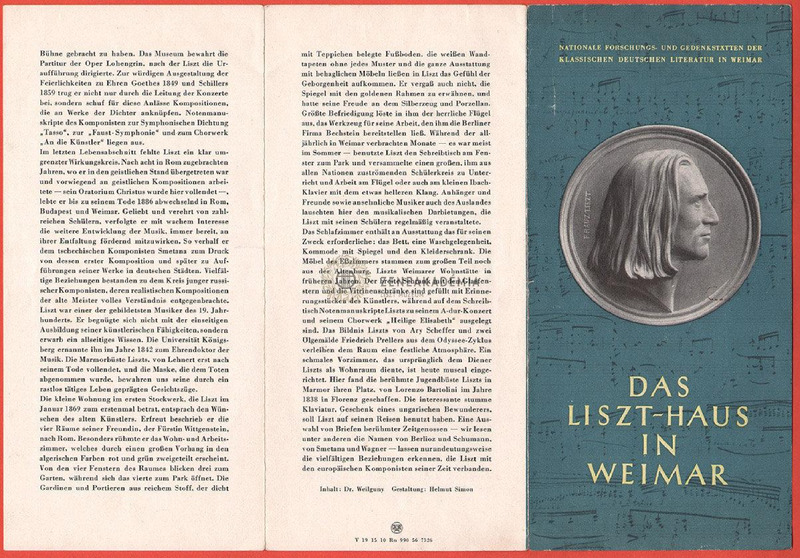 - A "Nationale Forshungs und Gedenkstatten der Klassischen deutshen Literatur in Weimar" kiadványa. A borítón plakett Liszt arcképével.