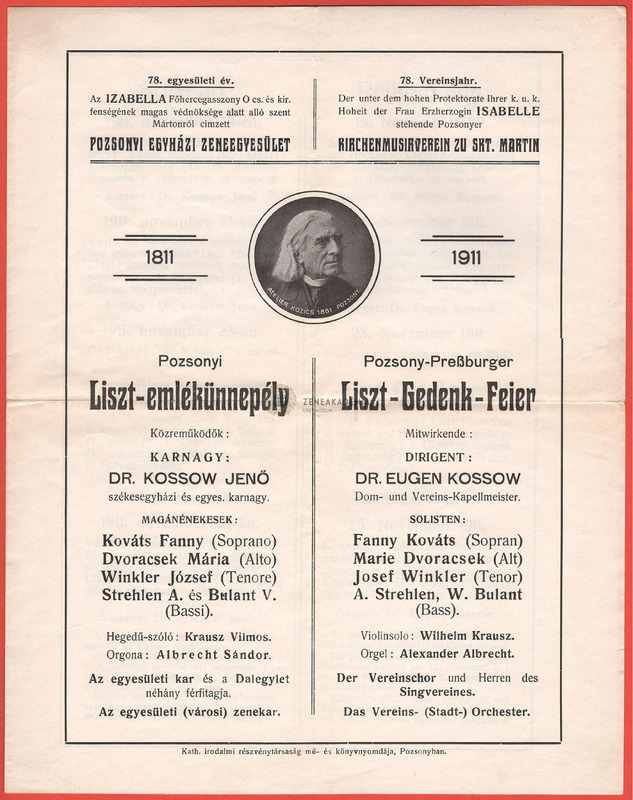 Az 1911-es pozsonyi Liszt emlékünnepségek műsorsorozata.