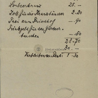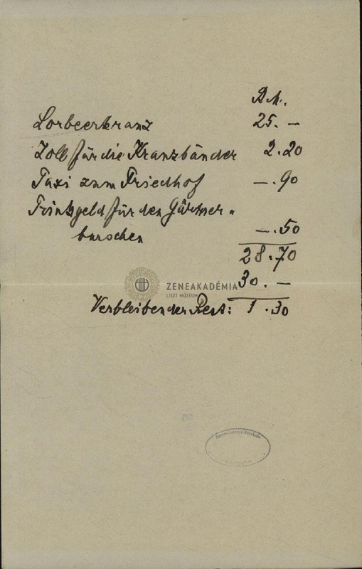 - Elszámolás: babérkoszorú, szalag, taxi a temetőbe, kertésznek borravaló 28.70,-