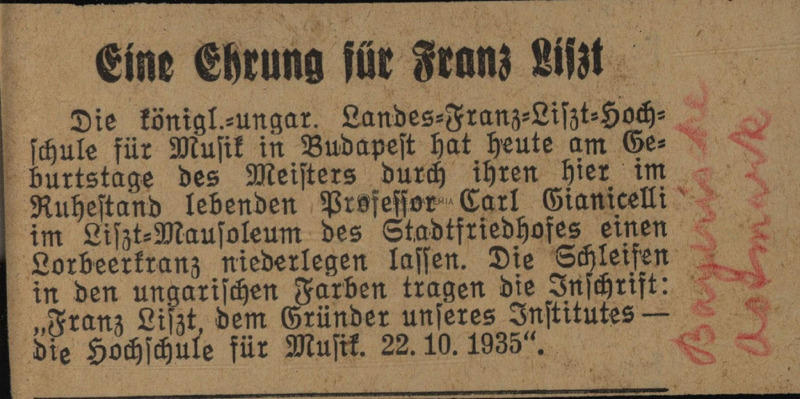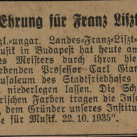 - Újságkivágat: „Eine Ehrung für Franz Liszt”.