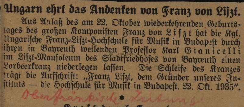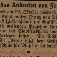 - Újságkivágat: „Ungarn ehrt das Andenken von Franz von Liszt”.