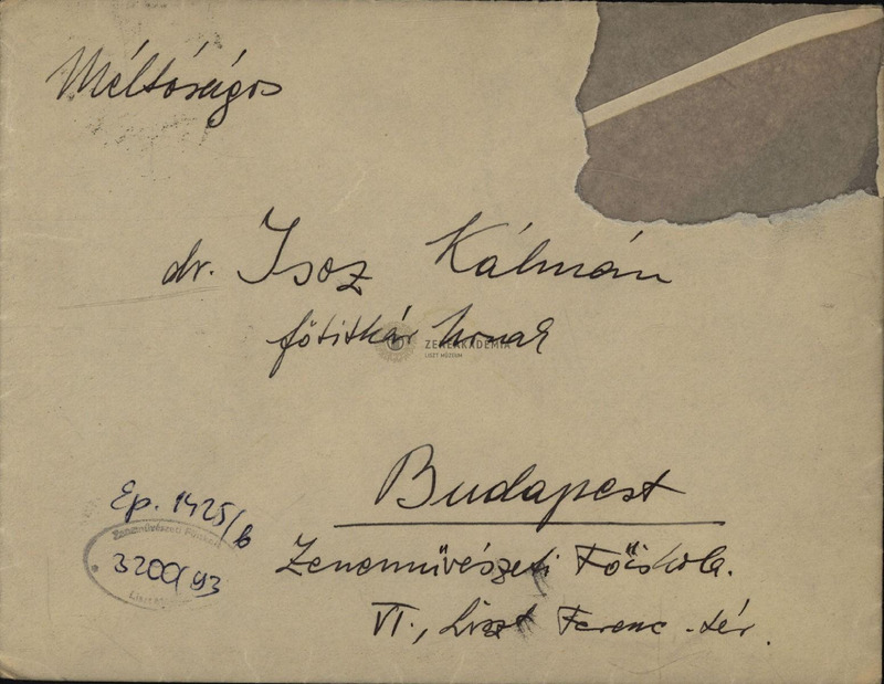 Gárdonyi Zoltán levele Isoz Kálmánhoz